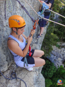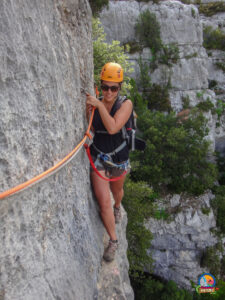 « Via ferrata » vient de l’italien « voie ferrée ». L’armée italienne a en effet développé ce concept pour permettre à ces troupes de franchir des passages escarpés plus facilement, notamment dans les Dolomites. Aujourd’hui c’est une activité sportive où on évolue sur des falaises parsemées de câbles, d’échelles, de ponts de singe, de ponts himalayens, de tyroliennes… Pour cela, les pratiquants sont équipés d’un baudrier, d’un casque, d’une paire de longes et d’une poulie.